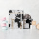 A black and white graphic pattern design made by using your name repeated in different font styles and sizes... because a great idea needs a stylish packaging