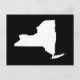 A simple blank modern minimalist design featuring the map shape of the state of New York in white against solid black.