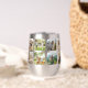 Photo collage thermal wine tumbler with 14 of your favourite photos alongside custom name in modern typography. Create your own custom photo gift for friends and family.
