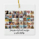 Create a customised photo ornament featuring 40 of your pictures in a simple modern grid layout alongside personalised text in elegant script calligraphy. All text and colours and can be adjusted to your liking in this design.