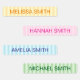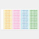 Modern simple kids waterproof name labels that can be colour coded and personalised for kids for clothing, lunch boxes or back to school supplies. All colours in this design are editable.