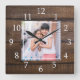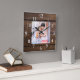 A rustic photo wall clock with a dark wood background. Personalize with grandkids phot to make a special holiday gift for grandparents.