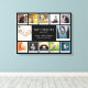 Modern photo collage canvas which you can personalise with 12 of your favourite photos. The template is set up ready for you to add your photos, working clockwise from the top left. Your photos are set against a simple, modern, elegant black background. All the wording can also be easily customised using our templates.
