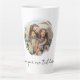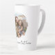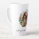 Create your own custom photo latte mug. This coffee cup features one of your favorite pictures in a circle shaped watercolor brush stroke frame and personalized text for any occasion. A great gift for family and friends or your own photo memory keepsake.