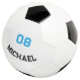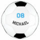 Create your own custom, personalised, stylish black and blue typography / script on white background, monogrammed  player name and jersey number, hand stitched with care, regulation sized soccer ball / display trophy football. Simply enter the player name and jersey number, to customise. Makes a great gift for birthday, christmas, holidays, new years, and more, for your loved ones, dad, husband, groom, son, brother, granddad, grandpa, grandkids, grandson, stepson, nephew, soccer player, team, club, coach, family and friends.