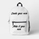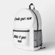 Lightweight and durable, our custom all-over-print Backpack is just what you need. The spacious interior is ideal for travel, school, gym, or any mobile storage need. Bring your stuff with you in style! Features Adjustable padded shoulder straps, two chambers on the inside for laptop storage, mesh side pockets and an identification label.