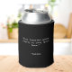 Create your own can cooler personalised with your favourite quote, saying, song lyrics or custom text in simple typewriter typography in black and white colour.