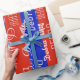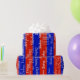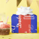 A patriotic (USA colours) pattern design made with your name repeated in different font styles and sizes on a background of large red and blue stripes