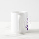 Create your own classic text typography design in royal purple against a white coffee cup.