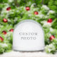 Create a meaningful keepsake with this customisable snow globe featuring two of your favourite photos. Upload one image for the front and a different image for the back to make it truly personal. The globe is made of durable acrylic and filled with water and shimmering snow that swirls beautifully when shaken. It rests on a sturdy acrylic base available in multiple colour options. Globe dimensions are 3.3 inches long by 3.3 inches high, and the internal image sizes are 2.36 inches long by 2.75 inches high. This snow globe is perfect for celebrating holidays, birthdays, anniversaries, or any special memory.