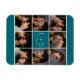 Teal Blue and White background - Use 8 square photos to create a unique and personal anniversary gift. Add the bride and groom's initials and date. If you need to adjust the pictures or monograms, click on the customise tool to make changes.