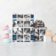 Navy Blue and White background - Use 8 square photos to create a unique and personal anniversary gift. Add the bride and groom's initials and date. If you need to adjust the pictures or monograms, click on the customise tool to make changes.