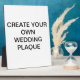Create Your Own Wedding Plaque. Great for so many uses. Add your own wedding photo, engagement photo, names of the bride and groom and wedding date for a wedding keepsake to give as gifts to wedding parties, family and friends. Or use for practical uses at the reception and wedding ceremony as signs. The ideas are endless.