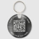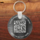 Simple elegant promotional keychain for your business or organisation with a brushed dark silver grey faux metallic background. Input your website URL address to create a scannable QR code and add two lines of customised white text, such as your company name, slogan, thank you, or leave blank.