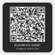 Modern promotional black sticker for your business or organisation. Easily create a scannable QR code linked to your website, and add two lines of text, such as your company name and slogan in simple white typography.