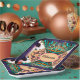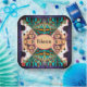 A bright geometric / fractal pattern in turquoise, violet and orange. Jewel or peacock colors. For a birthday party or maybe for a personalized guest plates at a wedding?