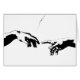 A black and white pop art style version of "The Creation of Adam", a section of Michelangelo's painting on the ceiling of the Sistine Chapel. It illustrates the Biblical story from the Book of Genesis in which God breathes life into the first man, Adam.