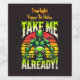 The artwork features a vibrant depiction of two aliens against a sunset backdrop. A larger alien towers over a smaller one, both displaying exaggerated features. The bold text conveys a humourous plea for interaction, enhancing the playful theme.