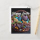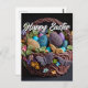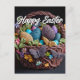 This holiday postcard features several colourful Easter eggs resting in an artistic basket.