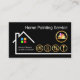 A black cover features a creative building frame design that contains an array of gold painting tools. To the left of this is the contact details with your business name at the top alongside a gold "home-paint fan" logo you can use.
