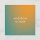 This modern square business card design features a colourful mint green and orange gradient ombré effect with simple typography on the front and back. Customise this business card template with your own information.