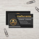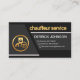 Over at the top of the card is the slogan caption "chauffeur service" which you can edit the caption remarks to suit your own service needs. Below the slogan is your prestigious name with the contact details in their respective grey buttons. To the left of this, is a faux gold chauffeur's logo you can use.