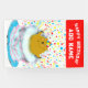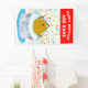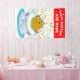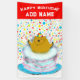Groundhog Day happy birthday banner featuring groundhog jumping out of a cake. To personalise edit text to add his or her name.