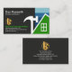 Card features an abstract green home with a white window. Above it are the bright layered blue skies.