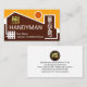 Just below the window is the business name "HANDYMAN" alongside a slogan caption ; You can change both captions to suit your own service needs. Held vertically on the right, inside the chimney is the contact details.