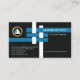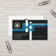 A simple creative design of interlocking I-Beam joints adorn the front of this card with an underlying black background. The top blue I-Beam houses your prestigious name with your job title directly underneath. Eastwards to this is a faux gold logo with the contact details near the base of the card. Should you wish to add a tagline, an option is available near the right bottom corner of the card.
