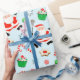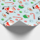 Creative lacrosse holiday gift wrap featuring Santa with a lax stick surrounded by Christmas treats.