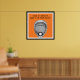 Motivational lacrosse goalie poster, featuring lax goalkeeper stick and funny quote on orange background.