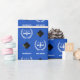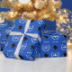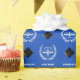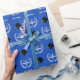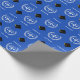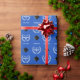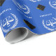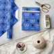 Unique law school graduation gift wrap and party decor featuring scales of justice and graduation cap pattern on blue background. To personalise edit text to add lawyer's name.
