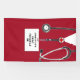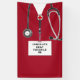 Nursing school graduation party banner featuring creative red hospital scrubs design for nurse grad. Edit text to add name and medical credentials.