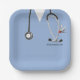 Unique nursing school graduation party plates featuring hospital scrubs, stethoscope, and funny Swiss Army knife design. To personalise edit text to add name of your favourite nurse.