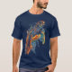 I give wanted to give this a 4 instead of a 5 because these Basic DARK T0shirts run unexpectedly SLIM or Narrow. Which is great if you do not have a potbelly, but I have a paunch. It isn't the shirt's fault that I've got a beer belly. The design and shirt itself is a quality cotton shirt. The color is more of a deep purple, but still a very pretty color. The Basic DARK T-shirts run a bit SLIMMER than the Basic Ts. The neck is a fraction narrower (or seems to be narrower) also. I'm a paunchy middle-aged woman and my neck is 12 inches (31cm) thick and the neckline fell about the same as in the photo of the man, and I had the desire to tug it a bit. So if you're a thick necked man or like loose shirts, be aware these are slimmer shirts. Once I get rid of my lockdown paunch it'll look great. The shirt washed well in cold water with no apparent bleeding. We don't have a dryer, so it hung dry. Did not shrink. Love the colors and the design. The design looks smaller on my shirt than it does on the model on-line. But still, it looks good on the shirt. The printing looks as it does on the model, just the size seems fractionally smaller. Washed garment in cold water, hung dry and design appeared unaffected.