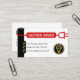Cover features a creative power plug line design that houses your business name "ELECTRICAL SERVICES" which you can change. Just below this are the card's details housed in their respective gold power gauge buttons. To the right is a gold "home bulb tools" logo you can use.