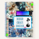 This fun and eclectic notebook has many different things all over the cover, from floral print to a silly bee and penguins in a scrapbook sticker style designed to inspire the most creative side of your brain and help you remove writers block, art block, and procrastination!