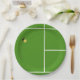 Unique tennis party or event plates featuring yellow tennis ball on a tennis court. Add your text to customize.