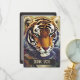 Wow friends and family with a modern, creative tiger thank you card. The front of the invitation features a tiger design with the phrase, "Thank You." The back of the card features your message and name. Earthy colours. Custom tiger design. Use the template to personalise.