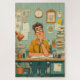 An imaginative scene of a thoughtful writer seated at a cluttered desk, surrounded by towering stacks of books, scattered notes, and a ticking wall clock. Warm lamp light highlights his focused expression, while a vintage camera and potted plant add character. Perfect for inspiring creativity, study spaces, offices, and literary enthusiasts who appreciate hardworking, reflective moments.