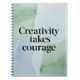 Unleash your imagination with the "Creativity Takes Courage" notebook, a beautifully designed companion for artists, writers, and dreamers alike. This notebook features a striking cover that boldly proclaims the mantra of creativity, inspiring you to embrace your unique ideas and express them fearlessly. Inside, you'll find high-quality, lined pages that provide the perfect canvas for your thoughts, sketches, and plans. Whether you're jotting down a sudden burst of inspiration, drafting your next big project, or simply doodling during a moment of reflection, this notebook is designed to encourage your creative journey. Its compact size makes it easy to carry, ensuring that you can capture your thoughts wherever you go. Elevate your creative process and let this notebook remind you that every great idea begins with the courage to create.