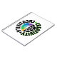 This image features a circular logo with the word "CREATIVITY" written in bold, black letters around the perimeter. The word is mirrored, with "CREATIVITY" appearing both clockwise and counterclockwise. Inside the circle, a black and white design resembling a target or a wheel fills the space. To the left of the wheel, there is a colourful pie chart with segments in purple, blue, light blue, green, and yellow. Two stars, one green and one black, are placed at the top and bottom of the wheel, respectively. The design suggests a connection between creativity and the power of ideas. The bold, black letters and the contrasting colours create a strong visual impact, emphasising the importance of creativity.