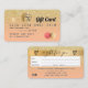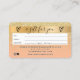 An elegant modern, stylish beauty Hair and makeup artist credit card style gift certificate business card with a modern script font typography on a chic faux yellow gold glitter sparkles ombre and peach. all text is customisable, add your social media. Featuring faux gold stripe. Add your logo, your monogram.