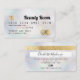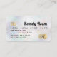 An elegant modern, stylish beauty Hair and makeup artist credit card style business card with a modern script font typography on a chic nacre pearl iridescent and gold metallic foil glam trendy background. all text is customisable, add your social media. Featuring faux gold stripe. Add your logo, your monogram and QR code.