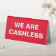 Counter sign for cashless businesses with text "we are cashless". Great for stores and restaurants that are debit / credit card only.