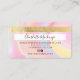 An elegant modern, stylish beauty Hair and makeup artist credit card style business card with a modern script font typography on a pastel, purple pink rainbow unicorn marble holographic trendy background. all text is customisable, add your social media. Featuring faux gold stripe. Add your logo, your monogram and QR code.