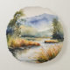 Creek Reeds Waterscape Mountains Round Cushion