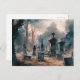 Creepy and Beautiful Grey Cemetery Halloween Holiday Postcard