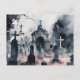Creepy and Beautiful Grey Cemetery Halloween Holiday Postcard